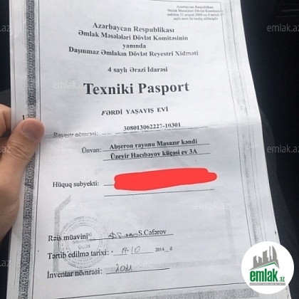 Mərtəbə: 1   Sənədin tipi: Çıxarış (Kupça)