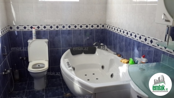 1-ci mərtəbədə 1 zal(50kv.m), 1 oturma otağı, mətbəx(24.kv.m), 1sanitar qovşağı. 2 -ci mərtəbə 4 yataq otağı, 3 sanitar qovşağı. 3 cü mərtəbə - 50 kv.m zal, 2 yataq otağı, 1 sanitar qovşağı. Həyətdə dekorativ və meyvə ağacları vardır. Ayrıca girişi olan qaraj, besedka, fontan, sanitar qovşaq və yarımtikili saunası var. Sənədləri qaydasındadır - Çıxarış(Kupca). Real alıcılara endirim ediləcək
