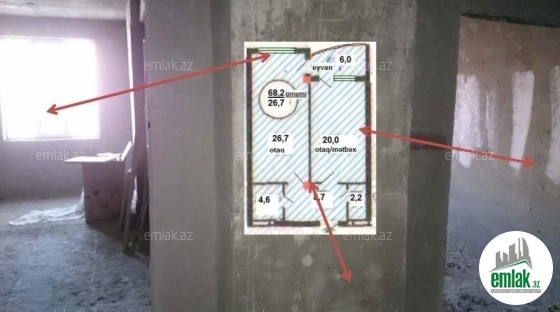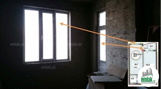 Masazir qəsəbəsi Əsas Praspekt yolun üstündə, XEZRİ-Mtk-da, 12 mərtebəli binanın 6 cı mərtebesinde 56 kv.m. Temirsiz menzil satılır