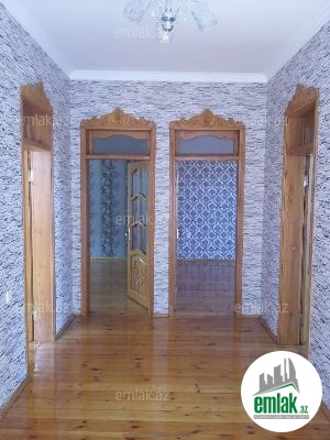 Binəqədi rayonu, Rəsulzadə qəsəbəsi, Baksol yolunun üstü (Banu Çiçək restoranının yaxınlığı). 100 kv metr ölçüdə olan evin ümumu sahəsi 2.5 sotdur. Mənzilin bünovrəsi karkaz beton, divarları cüt daşla inşa edilib. Ev kürsülüdür, 5 daş üzərində tikilib. Mənzil super remontdur. (Evi 4 otaqlı da hesab etmək olar- çünki, koridor o qədər iri götürülüb ki, elə bir otağı əvəz edir.) İşıq, qaz, su, telefon və kanalizasiya xəttlər tam qaydasındadır. Mənzil istilik sistemi ilə tam təmin olunub. Həyətində 10-a yaxın meyvə ağacı, üzüm tağları, güllər var.