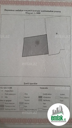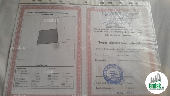 12 sot bilgəhdə torpaq sahəsi. Dənizdən maşınla 4 dəqiqəlik məsafədə. Mərkəzi yolun kənarında. Dəmir iri darvazası, içməli, su quyusu, kürü var. Həm ticarət, həm də yaşayış evi tikmək olar. Mərkəzi yoldan 7 m aralıdır. Hasardan 1 m aralıda qaz, su, işiq, telefon xətləri keçir. Həyət kvardat kimidir. Sənədi var. Sotu 11 000 manat.