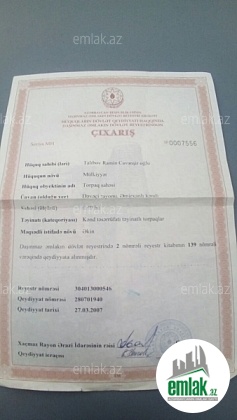 Təcili olaraq Dəvəçi Rayonunun Əmirxanlı kəndində meşəlik və çox münbit, əlverişli ərazidə yerləşən sahədə 40 sot torpaq sahəsi satılır. Torpağın pasportu, çıxarışı və bütün sənədləri var. Elan əmlak sahibinə yəni özümə məxsusdur. Təcili olaraq satılır !!! Elan üçün ciddi şəxslər müraciət edə bilər. Qiyməti razılaşma yolu ilə !!!