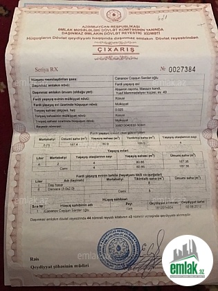 Ev shexsi istifade ucun tikilib, shexsi eshyalar.istisna olmaqla.evdeki butun eshyalar qalacaq, gir yasha veziyyetd...