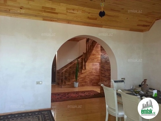 Satılır 2 mərtəbəli Həyət Evi, Binə qəsəbəsində, Heydər Əliyev adına Aeraportun yaxınlığında, Binə Atciliğ Mərkəzin yanında. Ümumi sahəsi 260 kv.m., ev 5.5 sot torpaq sahəsinin üstündə tikilib, 5 otaq, birinci mərtəbədə: dəhliz, qonaq otaqı, mətbəx, ikinci mərtəbədə: 4 otaq, s/q, eyvan, orta təmirli, taxta döşəmə və mərtəbə arası piləkən, quraşdırılmış mətbəx mebeli, avtomatik darvaza, həyətdə besedka, mətbəx və s/q.