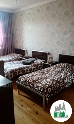 2mertbeli tam temirli heyet evi. 100kvm ev 50kvm heyet. metbex mebeli kombisi kondisoneri telefonu interneti var.su isiq qaz daimidi. torpaginda evinde kupcasi var.asagi yeride var.
