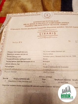 Продается от первого лица. 15 сот земли плюс дом. Имеется купча. Есть постоянная вода, свет, газ. Цена 70.000 манат. Контактное лицо : Севда 055-461-68-11