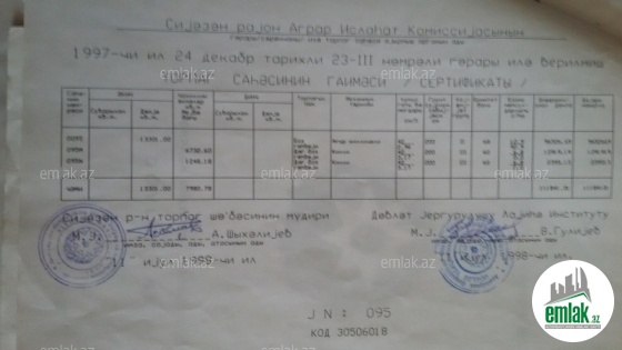 Sənəd: Çıxarış, torpaq növü – 99 illik müqavilə