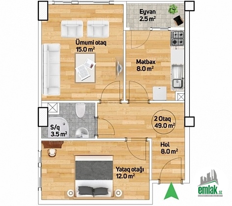 - Sahə50 m2