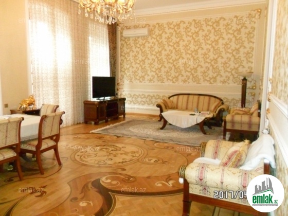 Səbail rayonu, Üzeyir Hacıbəyov küçəsi. Seherin tam merkezinde, Sahil metrosunda Azərpoçtla üzbəüz yerləşən Arxitektur layihəli 5 mərtəbəli möhtəşəm binanın 3-cü mərtəbəsində 5 mənzilin birləşməsindən düzəldilmiş yaxşı təmirli, 5 otaqlı, sahəsi 320 kvm olan mənzil 870000 manata cox tecili satılır. Binada qaz, su, işıq daimidir. Kombi var, döşəmə mozayka parketdir, mənzil skvaznoydur (yelçəkən). Tavanın hündürlüyü 5 metrdir. Mənzilin bir çıxarışı (Kupça) var. Ideal infrastruktur.