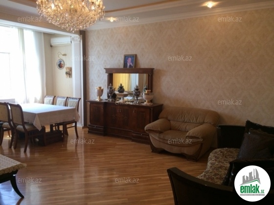 Bakı şəhəri, Nəsimi rayonu, Nəsimi Bazarının yaxınlığında, Travmatologiyanın arxasında ümumi sahəsi 170 kv. m. olan 4 otaqlı, əla təmirli mənzil satılır. Mənzil 16 mərtəbəli yeni tikili binanın 6-cı mərtəbəsində yerləşir və 1 xol, 1 böyük qonaq otağı, 3 yataq otağı, 2 s/q, 1 mətbəx və 1 balkondan ibarətdir. Mənzil bütün lazımlı mebel və avadanlıqla (soyuducu, paltaryuyan maşın, qaz plitəsi, mikrodalğalı soba) Binada mərkəzi istilik sistemi quraşdırılıb, daimi qaz, isti/soyuq su, işıq var. Bina liftlə təmin olunub. Mənzilin kupçası var.