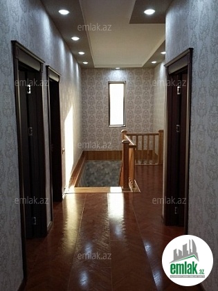 Şexsi tikilmis heyet evidir . Alt ust monalit betondur...7 otagdan ibaretdir . Orta temirli 6 sotun icinde.Otaglar genisdir. Evin icinde heyetin de hamam sanuzel var. Heyetde 10 t su baseyini var. Qaz su isig internet ...