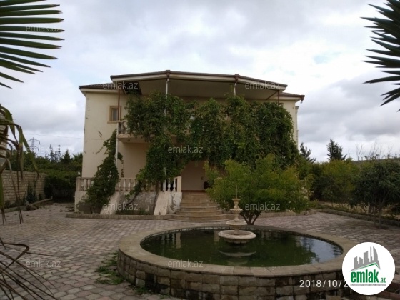 Dayanacaqdan 300m aralı 10 sot torpaq sahəsinin içində 2 mərtəbəli hər mərtəbəsi 135 kv m daimi suyu qazı işığı var. Şambosu,fəvvarəsi və həyətində ağacları var. Torpaq sahəsinin kupçası var. Təcili satılır. Qiymətdə razılaçmaq olar.