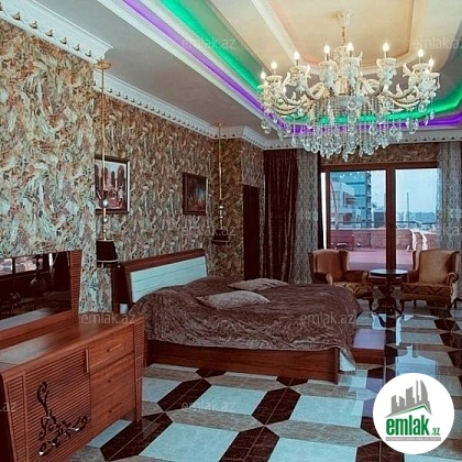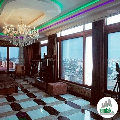 Yasamal district, next to the monument "N. Narimanov", in the elite new building is a 7-room apartment-duplex with a panorama of the sea for rent. 1 guest room, 4 bedrooms, 1 dressing room and 1 rest room. Floor: 16-17 / 17. Total area: 700 sq.m., Penthouse. Excellent renovation in the Art Nouveau style. Heating system "combi". Personal boiler room, fire protection system, floor heating. 7 split air conditioners (in each room). Plasma TV, CATV, Internet wifi ,. Spacious built-in kitchen with appliances + dishwasher. 2 balconies (terrace), 3 bathrooms (shower, jacuzzi). Guarded yard, high-speed elevators, parking spaces, underground garage, playground.