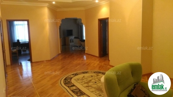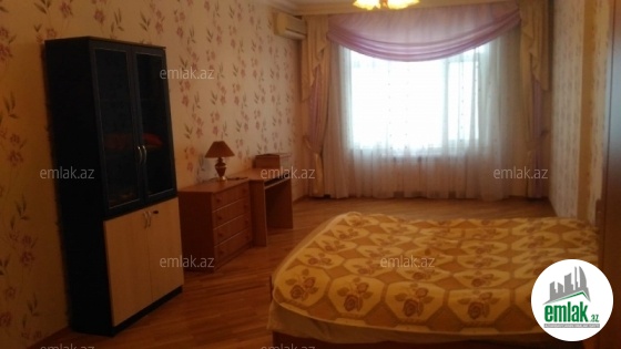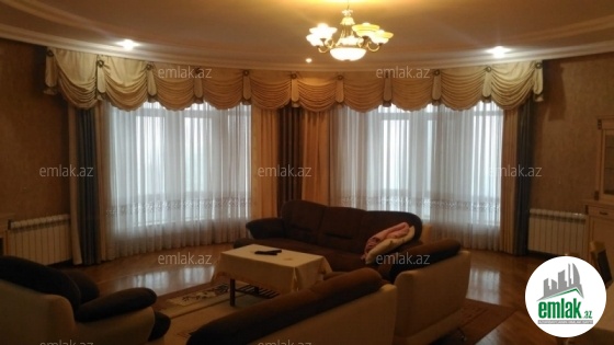 S.Vurğun küç. Təzə Bazarla üzbəüz dairəvi elit binanın (AFF CENTER) 19/13-də, dənizə və şəhərə əla görünüşü olan, 245 m^2, 5 otaqlı, təmirli və tam əşyalı mənzil kirayə verilir. Binanın yeraltı parkinqi, həyəti, 24 saat kamera nəzarəti və mühafizə xidməti, elit sakinləri, 3 lifti və s. var. Mənzildə 3 yataq otağı, 2 s/q, 2 eyvan var. Mənzil yalnız uzun müddətə verilir.