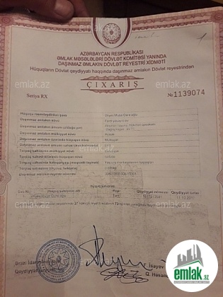 Sənəd Belediyyə.4 otaqli sadə təmirli bag evidir. 4 tərəfi 8 daş hasarli 6 Sot Torpaq sahəsi.Seabreeze masinla 15 deg yoldur.Bag evi kimi Yayda Dincəlmeyə Əlverisli yerdədir.Suyu Çəkilib.Qaz/İsiq yoxdur.Həyətin 2 yerdən ...