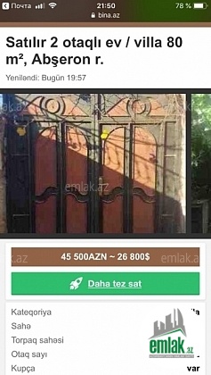 Masazlr qesebesi deyska deylen yerde yerlesir 2 otaq heyet evi kirditnen satllr ilkin odenis 37000 azn Ayda 500 azn qallq 18000 azn qazyoxdu alan musderi ozu hel edsin islq su dayml nacd 55000 azn tesekuler
