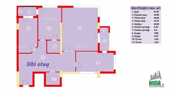 Ümumi sahə: 82 kv.m