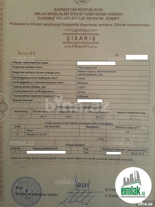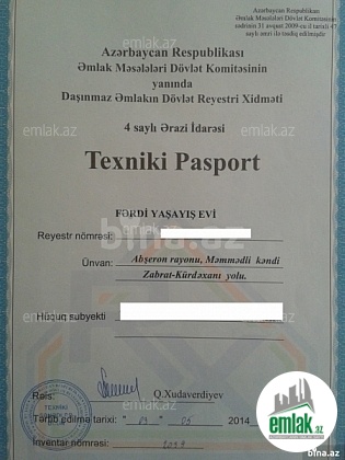 Fərdi yaşayış evi Zabrat 2 dairəsindən Məhəmmədi qəsəbəsi istiqamətində 900 m. sonra sağ tərəfdə, əsas yoldan 500 m. içəridə yerləşir. Koroğlu metrosundan 15 dəqiqəlik məsafədədir. Sənədi ÇIXARIŞDIR. Evin həm Texniki pasportu həmdə Çıxarışı vardır. Ev 9 daş kürsünün üzərində hər tərəfdən qoşa daşla hörülmüş 3 otaq, mətbəx, hamam, ayaqyolundan ibarətdir. Otaqların hündürlüyü 3 m-dir. Təmiri tam deyildir. Zəif təmirlidir. Öz zövqünə uyğun təmir etmək istəyənlər üçün əlverişlidir. Qaz, işıq, su daimidir. Kanalizasiya sistemi qazma quyudur. Ev 3 sot torpağın 1.2 sotunda tikilib. 1.8 sot torpaq sahəsində 20-dən çox meyvə ağacları əkilmişdir. Həyətdə əlavə olaraq ayaqyolu da vardır. Evin və otaqların hər birinin ayrı-ayrılıqda sahələri əlavə olunmuş texniki pasport şəklində əks olunmuşdur. Ev özümündür. Özüm satıram.