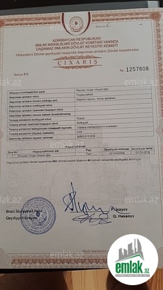 4sotun içinde heyetine 2mawın yerlewir.Asfalt yoldan 200metr içeride yeni tikili.Belediyye senedi 2004ci ilindi.Sened kupçaya gedir.Tecili satılır endirim olacag.