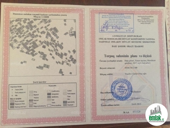 ÇOX TƏCİLİ... Xəzər rayon Mərdəkan qəsəbəsi 2445 saylı bağ sahəsində əsas yoldan üç yüz metr içəriyə üç tərəfdən hasara alınmış qaz işıq su xətlərinə cox yaxın 10 sotluq torpaq sahəsi satılır. Ətafinda yaşayış var.Sənədləridə tam qaydasında kupça çıxariş.Qiymət məsələsinidə torpağa baxış keçirdikdən sonra danışmaq olar. Fikiri ciddi olan yoldaşlara birazda güzəşt olunacaq.