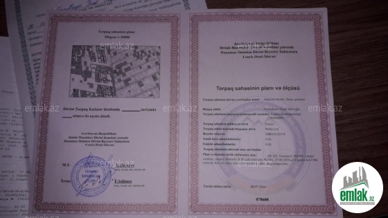 Saray qəsəbəsi Kamal Axundov k. Qoca Çinar ile üz üze. Saray petrolun arxasındaki 5-ci küçə. Əsas yoldan 2-ci həyət. Küçənin hər iki istiqamətinə çıxış var. Bakiya və Sumqayıta gedən yolun kənarı. Senedleri tam qaydasindadir. Çıxarışı var. Torpaq sahəsi fərdi evlərin tikintisi üçün nəzərdə tutulub. 4 tərəfi hundur daş hasar. Butun kommunallar çəkilib sayğac qoyulub. Həyətində 15 ədəd bar verən ağac var (nar, xurma, heyva, tut, əncir, əzgil, alça).