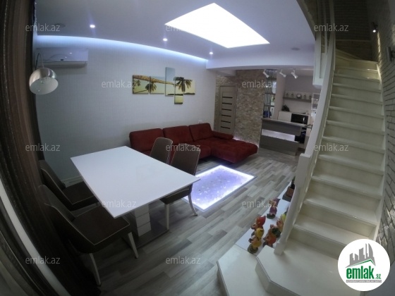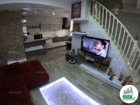TECILI satılır...Masazirda Qurtulush 93-de 2 Mərtəbəli (5-6-ci mərtəbələr və mansar)dublex super təmirli 4 otaqlı mənzildir. Təmir və dizayn işləri bahalı və marka matereallarla xüsusi zövqlə işlənilmişdir. Ev bütün əşyalarla satılır. Mətbəx mebeli xüsusi sifarişlə ‘’Blum’’-la yığılıb.Evdə 3 kondisioner,Yumuşaq mebel (pultla idarə olunur)qab yuyan,paltar yuyan, Tv 3D+Dolby D səs sistemi,mebel tipli mikrodalğalı soba və duxovka,2 sanuzel,hamamda divar tipli Woter masaj sistemi,dartma tavan led isiqlar,isıqlanma sistemi pulta bağlanmısdır.Tavanda xüsusi Fiber optik RGB işıq sistemidə mövcuddur.Evde 2 bağlı balkon var biri çamasırxana teyinatlıdır.Balkonda havalandirması olan xüsusi manqalda var.Daimi su,ishiq,merkezi istilik sistemi var. Shəhərcikdə məktəb,bagca,idman kompleksi,ushaq əyləncə mərkəzi,hovuz və s. fəaliyyət gostərir.Senedleshme qiymete daxildi.ətrafli zəng vurub maraqlana bilərsiniz
