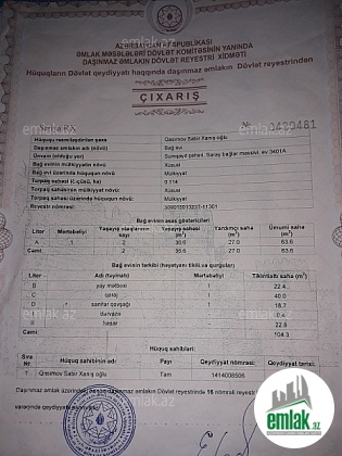 - Əmlakın növüHəyət evi