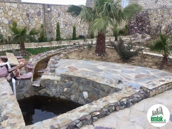 Heyetinde hovuza tökülən şəlalə və başqa bir şəlalədən axan 15 metr uzunluqda süni dekorativ çay var