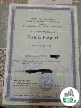 bütün sənədləri qaydasındadır torpaq sahəsi 6.5 sot suyu qazı işığı var dövlət ipotekası ilə satışı mümkündür illik 7% 25 il müddətinə