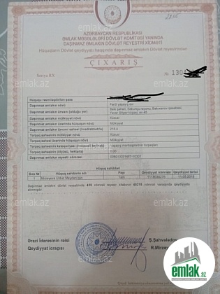 bütün sənədləri qaydasındadır torpaq sahəsi 6.5 sot suyu qazı işığı var dövlət ipotekası ilə satışı mümkündür illik 7% 25 il müddətinə