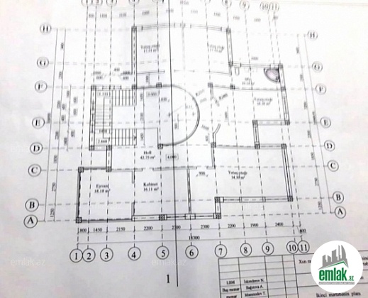 Evə (iki mərtəbəli yaşayış binasına ) aid eskiz layihəsi və planı var.