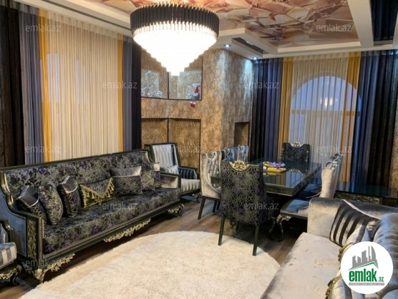 K.Balakishiyev kuch.,Neftchiler metrosunun lap yaxinliginda yeni tikili 17 mertebeli binanin 17-ci mertebesinde sahesi 165 kv.m olan 4 otaqli menzil satilir. Menzil super yevro dizaynla temir olunub ve chox bahali ve keyfiyyetli tikinti materiallarindan istifade olunub..Menzil 1 zal ,3 yataq otagi,metbex,dehliz,1 eyvan,2 sanitar qovshaq ve 1 kladovkadan ibaretdir.Menzil mansard deyil,mertebeye de lift qalxir.KOmbi sistemlidir.Otaqlarin arakesmesi kerpic,dami ise betondur.Su,qaz,ishiq daimidir.Senedi: Kupcha,texpasport,menzilin sigortasi var.Su filtri qurashdirilib ve elave ,ehtiyyat uchun 1 tonluq chen qurashdirilib. Menzil son model tam eshyalarla birlikde satilir.