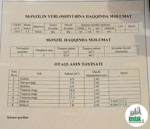 QEYD: 10 kv artırması var, blokda qarderobu var və əlavə olaraq 30 kv bağlı həyəti var !!!