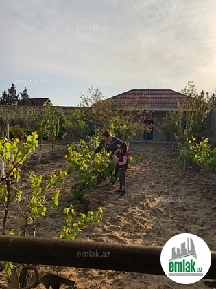 Pirşağıda 20 sot ərazidə 2 mərtəbəli(6 otaqlı, təmirsiz) və 1 mərtəbəli (oxran evi 2 otaqlı) təmirli bağ evi. 150-dən cox meyvə ağacları və güllüklər, 2 su xətti, qaz,3 faza işıq,13 ton icməli su baseyni, asfalt yol və s..