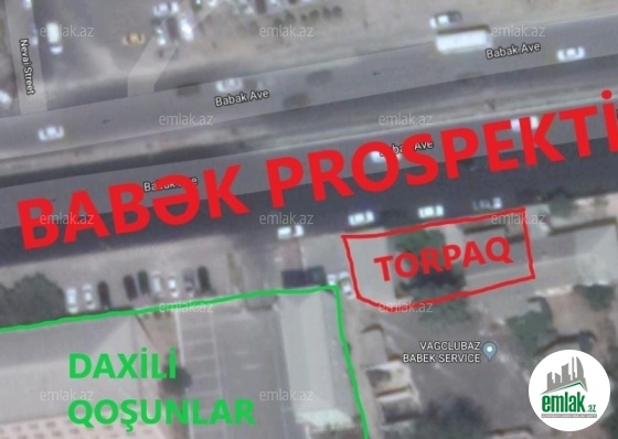 BABƏK pr-ti OBYEKT üçün düz yolun kənarında 4 sotluq torpaq sahəsi. Daxili Qoşunların sol tərəfindəki torpaq. 35 metr yola, 11 metr içəri uzunluqdur. Kupça hal-hazırda yoxdur, Texpasportu var, digər bütün sənədlər tam qaydasındadır. Hazırda 2 otaqlı kupçalı ev, fəaliyyətdə olan maşın təmiri sexi var. İşıq, qaz, su daimidir. Digər bütün suallara görə əlaqə saxlayın. Torpağa istənilən vaxt baxmaq olar. Öncədən əlaqə saxlayın.