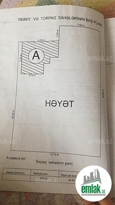 Binəqədi. FHN. Yubiley marketin yanı.3 sot torpaq içində 2 otaq yarımçıq tikili.pula ehtiyac olduğu üçün satılır.qaz işıq su xətləri yaxındadır.işığın çəkilməsi üçün sənəd hazırdır.179,93,92,nömrəli avtobuslar işləyir.Avtovağzala 20 yanvara ,Eurohome inşaat mərkəzinə yaxındır. Yaxınlıqda neftə aid kaçalka yoxdur.Neft kəməri yoxdur.Nəqliyyat Sənədi Bələdiyyə qeydiyyat . MMC. Cənab Prezidentin fərmanı olduğu üçün 2020 nin sonuna qədər kupça ilə təmin olunacaq.Tecili satilir 11000 azn Real aliciya razılaşma olacaq.Xahiş olunur ancaq real şəxslər zəng etsin.və ya vatsap ilə əlaqə saxlasın.