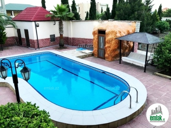 Во дворе летняя беседка, большой бассейн , перед бассейном душ-кабина. Также во дворе посажено много декоративных насаждений и фруктовых деревьев, пальмы, ёлки и водопад.