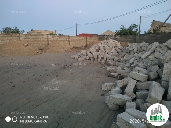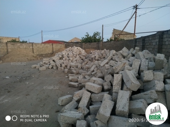 Həyətin 4 tərəfi kubik hasar ilə bağlıdır. Giriş qapısı qoyulmayıb. Həyətdə 2mərtəbəli evin 1ci mərtəbəsi tikilib. Layihə modern dizayna uyğun işlənib. 2 ci mərtəbəyə aid olan hörgü üçün kərpiclər dam örtüyü ləvazimatlar...