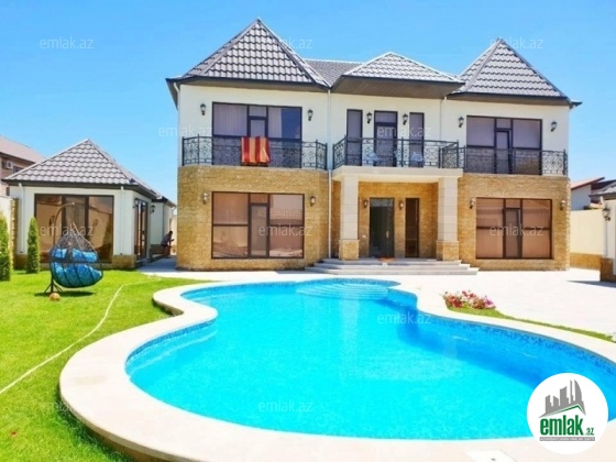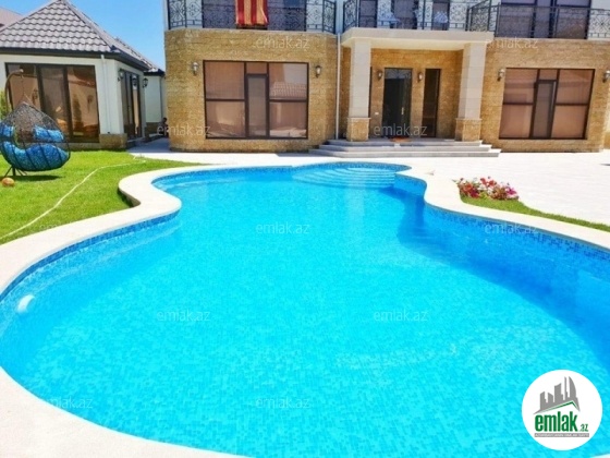 **MERDEKAN BAGLARI** Mərdəkan qesebesinde ARZU Restoranınin yaxinliginda 11 sotun icinde inşa edilmiş umumi sahesi 450 kv-m olan 2 mertebeli 7 otaqli dəb dəbəli bağ evi satilir ! Evin tikintisində keyfiyyətli tikinti materiallarından istifadə edilmiş və çox səliqəli inşa edilmişdir.Heyetinde geniş filtirli hovuzu, bisetkasi, yay mətbəxi, manqalnisi, dekorativ ve meyve aqaclari , qarajı, mühafizə tağı, sensorla olan gece isiqlari, sanitar qovsaqi var.Qazi , suyu , isiqi daimdir . Istilik sistemi kombidir . Senedleri qaydasindadir (KUPCA)