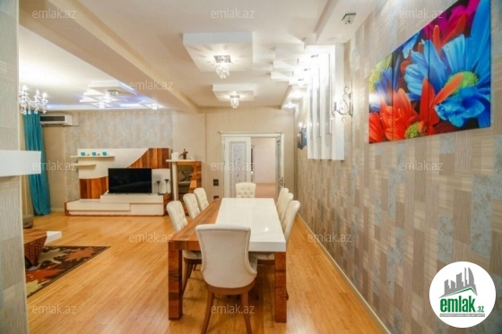 Mənzil binanın 5-ci və 6-cı mərtəbələrini əhatə edir, ümumi sahəsi 200 kv.m, 5 otaqlıdır.