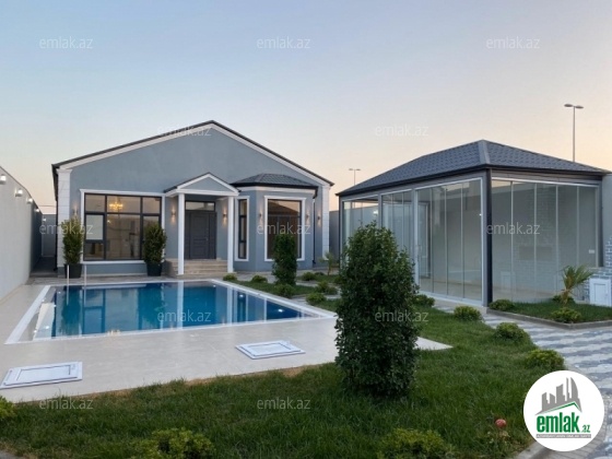 **MERDEKAN.BAGLARI**Merdekan qəsəbəsində 6 sotda 1 mərtəbəli bağ evi satılır. Ümumi sahəsi 200kv.m olan bu bağda, 5 otaq var: 1genis qonaq otağı, 4 yataq otağı, mətbəx, xoll və her yataq otaginda s/qovsagi vardir.Heyetinde geniş filtirli hovuzu, bisetkasi ,manqalni, dekorativ aqaclari , sensorla olan gece isiqlari, sanitar qovsagi var.Darvaza pultla idarə olunur.Evin tikintisində keyfiyyətli tikinti materiallarından istifadə edilmiş və çox səliqəli inşa edilmişdirQaz,su, işıq daimidir. Senedleri qaydasındadır (Kupca).