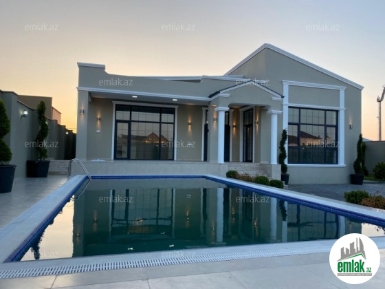 Merdekan qəsəbəsində yola yaxın bir yerdə "Dalğa Beach"terefde 7.5sotda 1 mərtəbəli bağ evi satılır. Ümumi sahəsi 240kv.m olan bu bağda, 5 otaq var: 1genis qonaq otağı, 4 yataq otağı, mətbəx, xoll və her yataq otaginda s/qovsagi vardir.Heyetinde geniş filtirli hovuzu, bisetkasi ,manqalni, dekorativ aqaclari , sensorla olan gece isiqlari, sanitar qovsagi var.Darvaza pultla idarə olunur.Evin tikintisində keyfiyyətli tikinti materiallarından istifadə edilmiş və çox səliqəli inşa edilmişdirQaz,su, işıq daimidir. Senedleri qaydasındadır (Kupca).