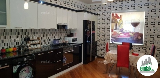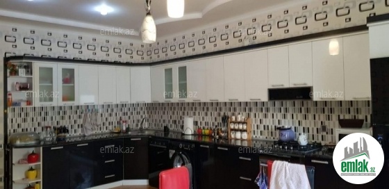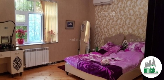 yoldan 100 metr arali,6 sot torpaqda tikilmiş,6 daş kürsülü,120 kv.m.4 otaqlı,əla təmirli ev.Ev əşyalarla bir yerdə satılir(soyuducu,paltaryuyan maşın,...