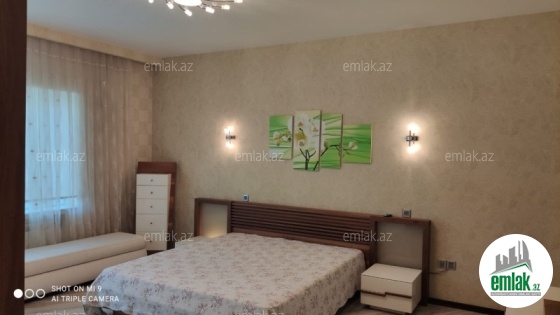 Elmler Akademiyası metrosunun yaxınlığında yeni tikilidə sahəsi 200 kv.m olan 4 otaqlı mənzil kirayə verilir. Əla təmir olunub: divar kağızı, palıd döşəmə və daxili qapılar, mənzil mebellərlə təhçiz edilib, pərdələr, mətbəx mebeli, domofon,2 böyük s/q, İtalyan santexnika,cakuzi, Kombi istilik sistemi, hollda və mətbəxdə isti döşəmə. 2 lift "Siqma" (yük və sərnişin ücün), Mühafizə olunan həyət, əla infrastruktur: video müşahidə sistemi, Su, elektrik və qaz daimi .