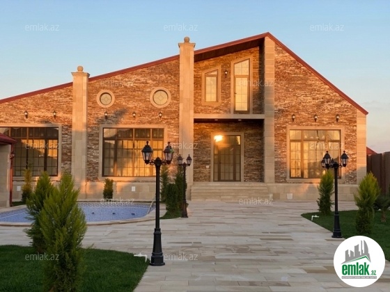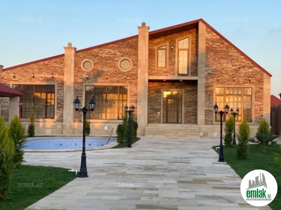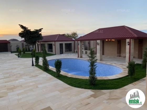Mərdəkan qesebesinde, tam infrastrukturlu ve prestijli bir erazide , 12 sotun icinde inşa edilmiş , xususi zovq ve dizaynla islenmis modern uslubda (avro) temir olunmus umumi sahesi 250 kv-m olan 1 mertebeli 5 otaqli bağ evi satilir.Evin tikintisində keyfiyyətli tikinti materiallarından istifadə edilmiş və çox səliqəli inşa edilmişdir. Heyetinde geniş filterli hovuzu, besedkasi, yay mətbəxi, manqalnisi, dekorativ ve meyve aqaclari , qarajı, mühafizə otağı, sensorla olan gece isiqlari, sanitar qovsaqi, var .Qazi , suyu , isiqi daimdir . Istilik sistemi kombidir . Senedleri qaydasindadir (KUPCA)