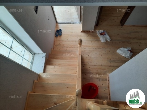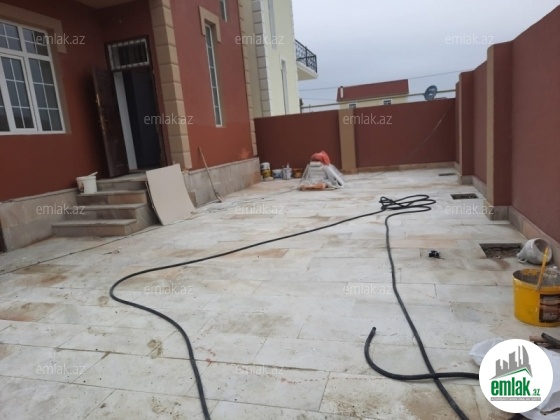 Abşeron rayon Masazır qəsəbəsi, Yeni Bakı yaşayış kompleksinin arxasında yerləşən, 1.8 sot torpaq sahəsində inşa edilmiş, ümumi sahəsi 155kv 2 mərtəbəli, 4 otaqlı həyət evi, mərtəbə arası döşəmə manalit betondur, yaxınlıqda orta məktəb, müxtəlif marketlər və digər iaşə obyektləri mövcuddur, qaz su işıq vardır, sənəd KUPÇADIR.