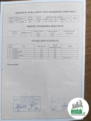 Mənzil şəxsi mülkiyyətdir, tək kupça və tək çıxarışla...