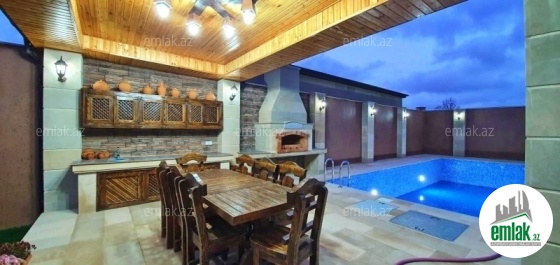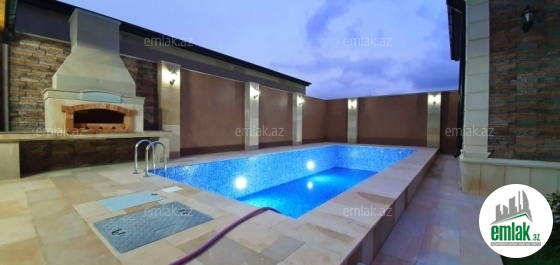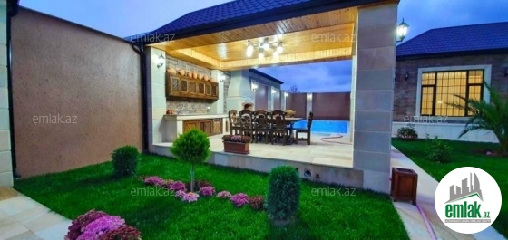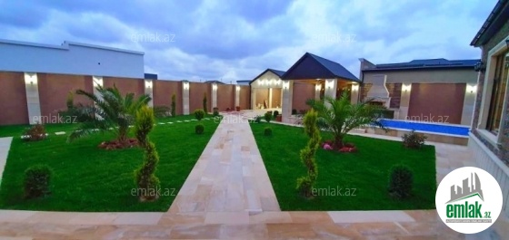 **RUFAT*AYNUR** Mərdəkan qəs, 8 sotda yeni uslubda inşa edilmiş 1 mərtəbəli bag evi satılır, 190 kv.m, 5 otaq, 3 san/qovşaq, (2 yataq otağında sanitar govşağı var), istilik sistemi kombi, qaz, icməli su xətti, pultla idare edilen darvaza, filtirli hovuz, heyetinde 1 san/q, yay və qış mətbəxi, manqal, besedka, avto ucun yer, su ambarı. Cıxarışı var (kupca). Yolu asvalt. Ev daimi yaşayış olan yerdə yerləşir və il boyunca yaşamaq ücün yararlıdır.
