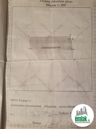 Sumqayit yolunun usdunde saray postuna catmamis Azpetrolun yan kucesinde esas yoldan 600 metr iceride tam yasayis massivinde 10.4 sot hasara alinmis torpag sahesi tecili deyerinden asaqi qiy...