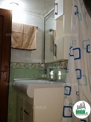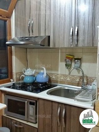 5/3 mərtəbə, 1 otaq – 2 otağa düzəlmiş, 34 kv.m yaşayış sahəsi olan, “Xruşovka” layihəli daş binada. Bina Ağa Nemətulla küçəsi ilə F.X.Xoyski prospektinin kəsişməsində yerləşir. Mənzilin pəncərələri prospektə baxır. Yeni təmir olunub, əla təmirlidir. Seyf qapı, parket döşəmə, plastik pəncərələr, fıstıq ağacından qapılar, 2 tonluq (ikiqat izoliyasiya olunub, şaxtaya davamlıdır) və 500 litrlik su çəni, daimi isti- soyuq suyu var. Qarderob, mətbəx mebeli, kondisioner, paltaryuyan, televizor, soyuducu, mikrodalğalı soba, peyk antenna, telefon və digər mebellər. Mebellər yenidir və MDF materialındandır.